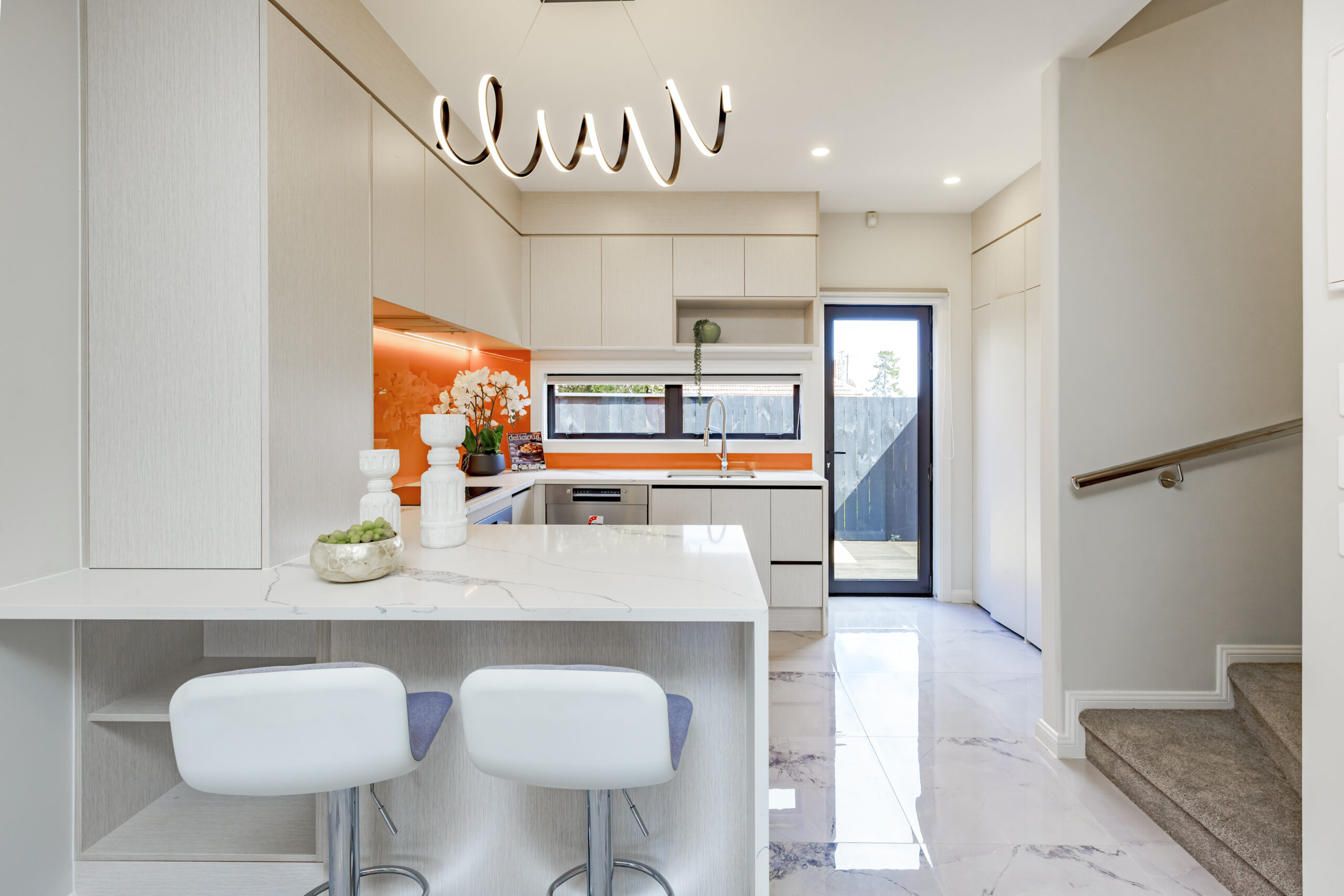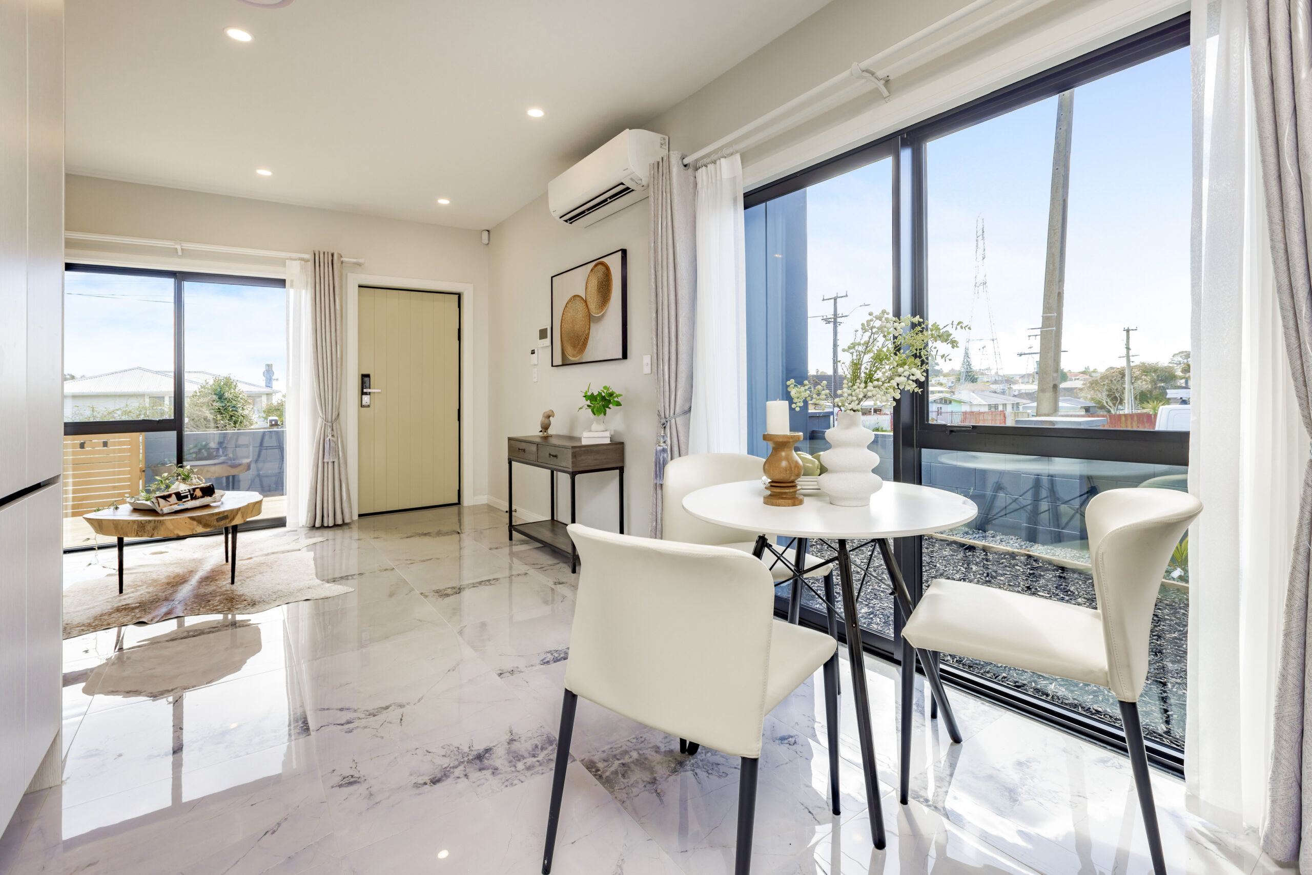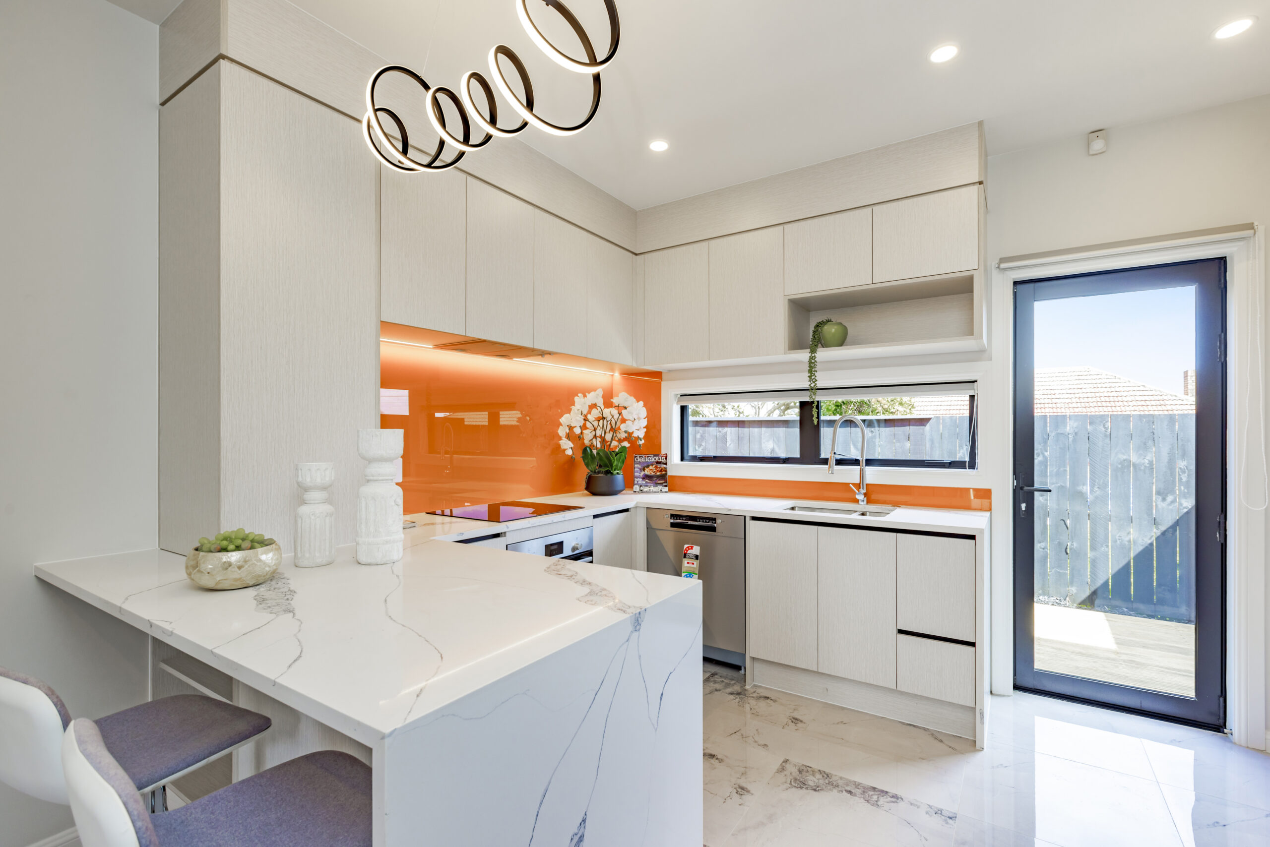 - Open-plan living, dining, and kitchen area